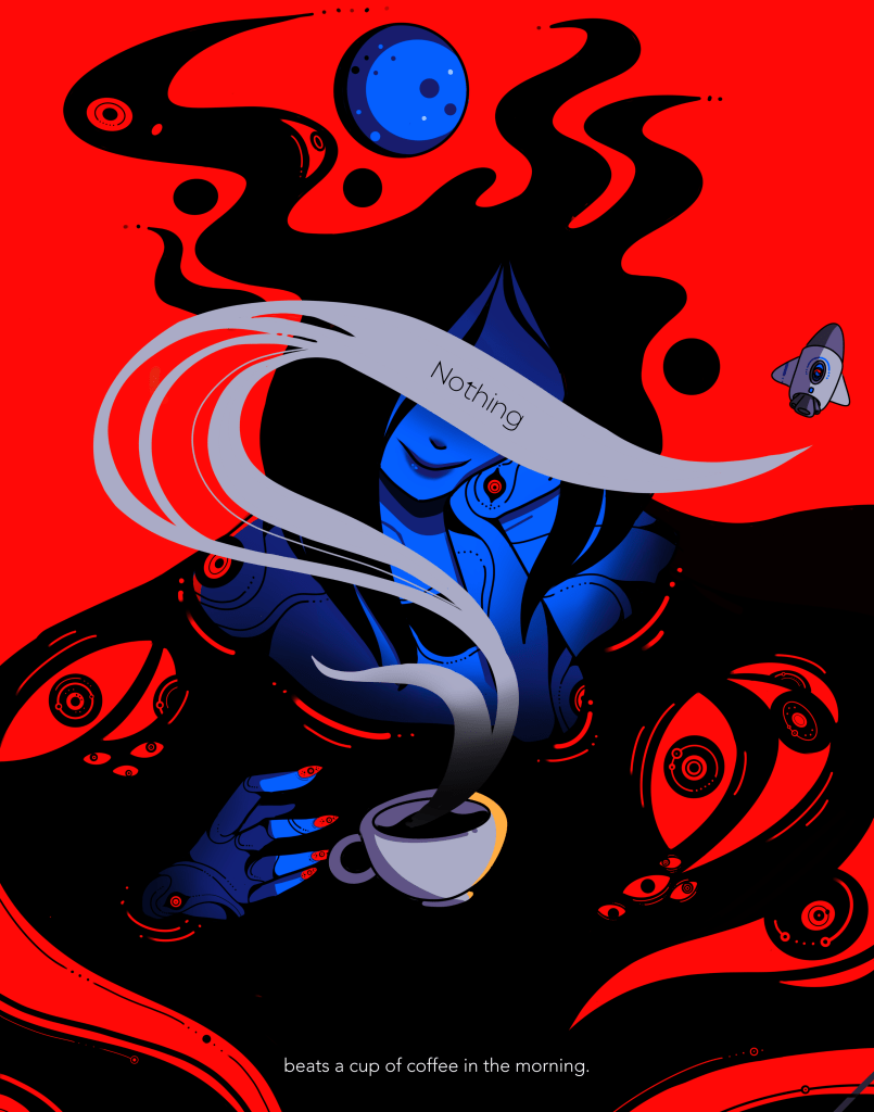 A series of illustrations, VOID seeks to juxtapose everyday mundanities with aspects of cosmic horror. It deals with themes of anxiety, loss of self, and existential dread.